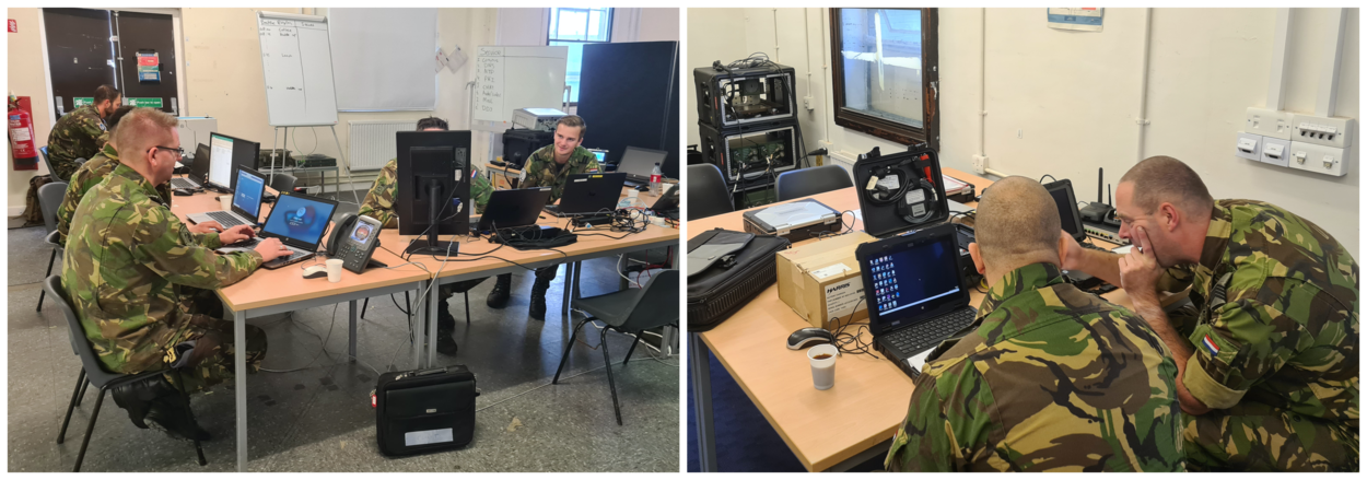 De voorbereiding voor een oefening als Volcanex neemt heel wat tijd in beslag. De basis is eerder dit jaar gelegd tijdens een EAG CIS-bijeenkomst in Leeming. Tijdens de oefening zelf houden zogenoemde trial leaders in de gaten dat er niet teveel uit de losse pols wordt geëxperimenteerd. “Je moet goed afspreken wat je gaat testen, welke services je wilt opzetten en wat de doelen zijn”, stelt eerste luitenant Michel (961 Squadron, Vliegbasis Woensdrecht), de leider der oefening voor de dertienkoppige Nederlandse delegatie. “Daar hangt dan weer vanaf welke apparatuur en welke mensen je meeneemt. Zo hebben wij geen satellietcommunicatie mee of Tetra [terrestrial trunked radio, red.]. Wat we nog aan Tetra hebben, is verouderd en wordt vervangen, dus dat heeft geen zin met het oog op de toekomst. En wat de bezetting betreft: soms is dat ook zoeken.” Nu komen onze deelnemers van het Defensie Helikoptercommando (DHC), Air Combat Command (ACC), Air Mobility Command (AMC), Air Support Command (ASC) en het Joint IV Commando van COMMIT. “Op al die locaties zijn ze drie weken lang collega’s én systemen kwijt. Daar is niet iedereen blij mee, want de reguliere bedrijfsvoering gaat ook gewoon door.”