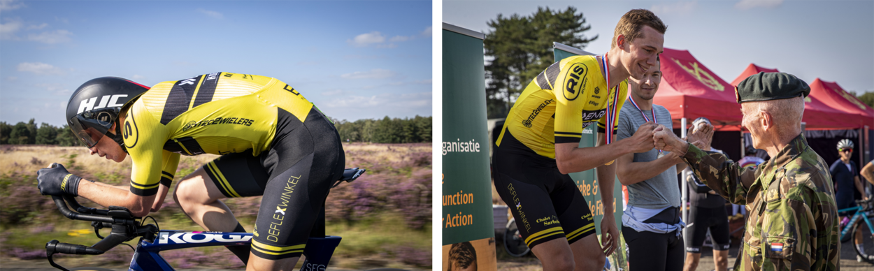 Hoewel hij zijn vlekkenpak met volle overtuiging inruilt voor een lycra-variant, gooit Lemmen de deur bij Defensie niet helemaal achter zich dicht. Als reservist bij de Groep Luchtmacht Reserve blijft hij verbonden aan de krijgs- en luchtmacht. Want hoewel hij een ongelofelijke, vliegende start heeft gemaakt, zal ook racemonster Lemmen ooit aan de rem moeten trekken. “Je kunt geen wielrenner blijven tot je 66ste. Ik hoop natuurlijk zo lang mogelijk mee te gaan, maar die ingang bij Defensie is toch een fijn idee. Je weet maar nooit hoe het loopt.”