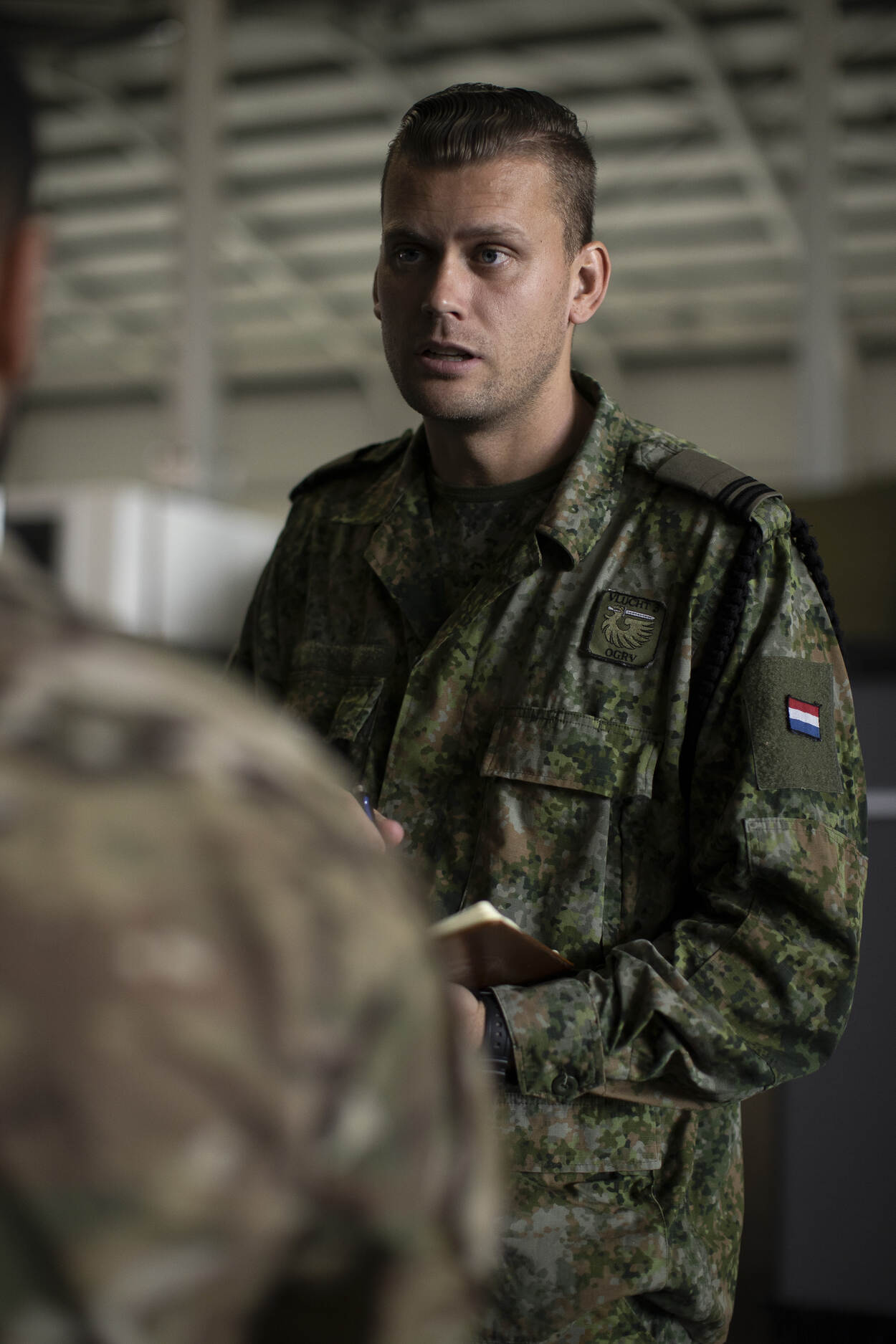 Brian: “We zijn blij hier te zijn. Dit zou een unieke missie kunnen worden. Je gooit hier verschillende eenheden van diverse krijgsmachtdelen in een pressure cooker. Waar wrijving zou kunnen ontstaan, ontstaat juist synergie en een win-win situatie omdat iedereen zijn eigen specialisme op de juiste manier kan inzetten. Natuurlijk is dat uitdagend. Moet je ineens met mariniers gaan samenwerken. Dat gaat echter heel goed. Iedereen weet precies wat hij wel, of juist niet moet doen.”