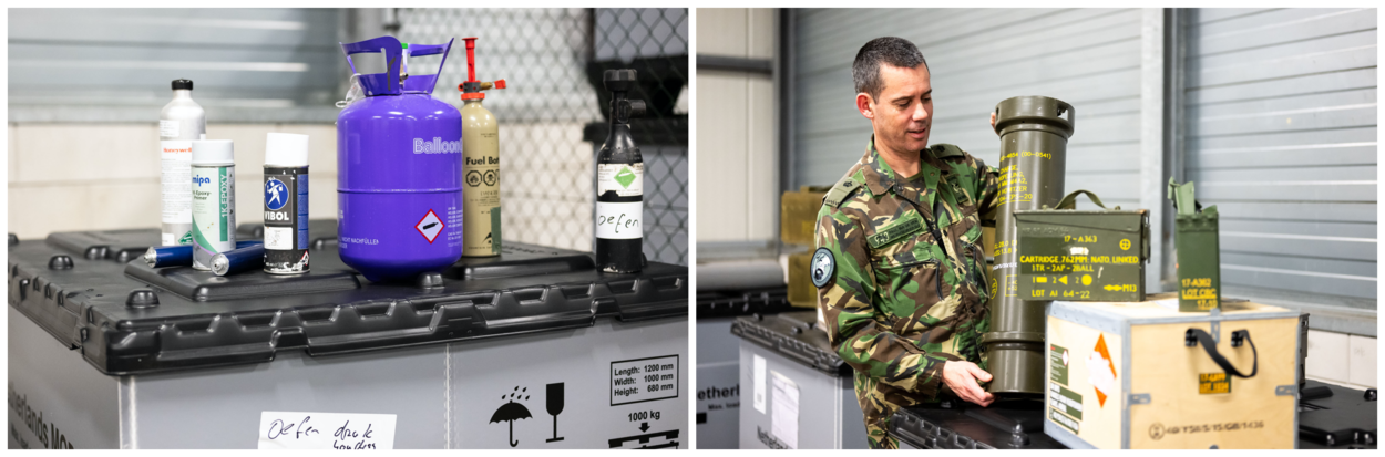 “Onderzoek liet zien dat afzenders niet altijd op de juiste manier hun luchtvracht aanboden”, vertelt majoor Gwen Kops. Als commandant van 940 Squadron valt het DLE onder haar verantwoordelijkheid. “En dan gaat het met name om gevaarlijke stoffen als munitie, lithiumbatterijen en drukhouders. Collega’s hadden wel de juiste intenties, maar niet de juiste ervaring en zijn daardoor simpelweg niet vakbekwaam genoeg.”