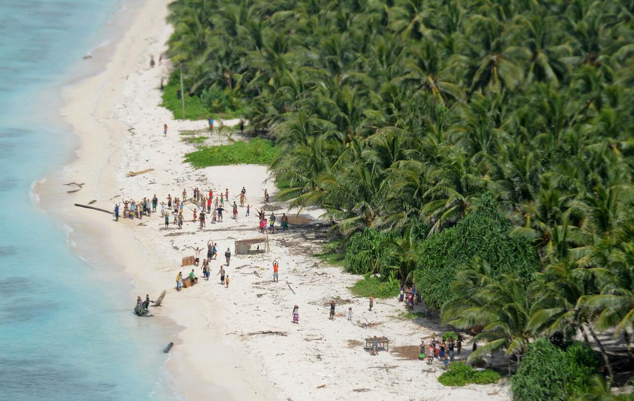 Een voorbeeld van een WB-29 Superfortress. Een exemplaar van het 54th WRS is in 1952 op zoek naar orkanen als de bemanning de zwaaiende bevolking op het Kapingamarangi-atol ziet, op bijna 1800 kilometer ten zuidoosten van Guam. Foto: USAF