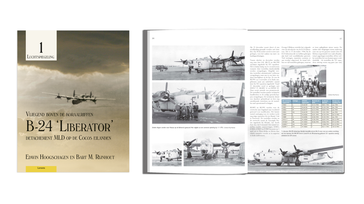‘Luchtspiegeling 1 – Vliegend boven de koraalriffen; B-24 ‘Liberator’ detachement MLD op de Cocos-eilanden’ met ISBN 9789464561029, is geschreven door Edwin Hoogschagen en Bart M. Rijnhout en uitgegeven door Lanasta, een imprint van Walburg Pers in Zutphen. De softback op formaat 21 x 28cm telt 88 pagina’s voorzien van ongeveer tien kleurenfoto’s en afbeeldingen, vier vliegtuig kleurenprofilen en ruim 130 zwart-witfoto’s en -afbeeldingen. Het boek kost € 24,99. Kijk voor meer informatie op www.walburgpers.nl.