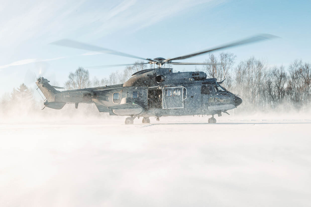 Het CLSK neemt van half februari tot half maart deel aan grootschalige oefeningen op de Noordflank van de NAVO, onder meer met een C-130, (deze) Cougar en NH90.