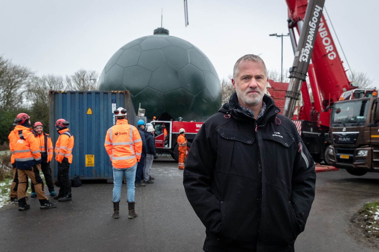 In het Noord-Friese Wier is woensdag 17 januari een koepel geplaatst op de Signal Multibeam Acquisition Radar for Targeting, Longrange, ofwel de SMART-L-radar. “Deze radar, nabij de Waddenzee, voldeed niet aan de wettelijke geluidsnorm”, vertelt Patrick Morren, projectleider van COMMIT. “De nabijgelegen dorpskern begint op zo’n 450 meter afstand en de bewoners hadden last van een bromgeluid. Ook werd het beeld van een draaiende radar niet als prettig ervaren. Daarom zijn we gaan kijken naar wat we konden doen en daar kwamen uiteindelijk twee oplossingen uit.”