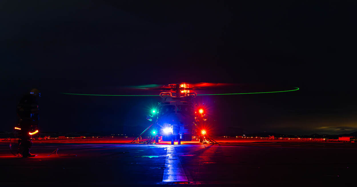 Nederland nam deel aan het arctische deel van Steadfast Defender, Nordic Response genaamd. Naast onder meer achthonderd militairen, Zr.Ms. Johan de Witt en Zr.Ms. Karel Doorman waren ook twee NH90’s van de partij. De Doorman was hun uitvalsbasis. Off we go! Een van de NH90’s is onderweg om samen met helikopters van andere schepen te trainen. Vanaf een marineschip vliegen vraagt overigens heel wat extra’s van de boordvliegploeg. Nog net te zien is dat de crew met lijn vastzit, om te voorkomen dat iemand overboord slaat en niet meer te vinden is. Koud? Absoluut! Maar vliegend of taxiënd met open deur maakt het nog vele graden kouder. Beschermende kleding, waaronder een gezichtsmasker, is dan ook essentieel voor cabinepersoneel van de NH90. Vliegen ver boven de Poolcirkel brengt ook wat voordelen met zich mee. Voor het oog dan toch. De fjorden, oceaan en besneeuwde, steile heuvels zijn haast een kunstwerk op zich. Zeker als de ondergaande zon deze twee Britse Wildcats verlicht. Over indrukwekkend gesproken… De bemanning van deze Britse Wildcat viel met de neus in de boter. Want zeg nou zelf: wie zou nou niet willen vliegen terwijl het immer fascinerende noorderlicht in de lucht danst? Tijdens Nordic Response stond samenwerken centraal. Niet allen te land en ter zee, maar zeker ook in de lucht. Voor en achter de Nederlandse NH90 vliegen een Britse Royal Navy Merlin HC.4 (voor) en Army Air Corps Apache (achter) in formatie. Tegelijk met Nordic Response werkt een team van zo’n 30 militairen van 336 Squadron een eigen oefening af: Joint Arctic Training. Met op de achtergrond twee Britse Merlins taxiet een C-130 op ‘thuisbasis voor een week’ Bardufoss. Oefendoelen zijn laagvliegen in bergachtig gebied overdag en ’s nachts en airdrops van materieel en personeel. Behalve bepaalde vliegformaties, zoals hier te zien is, trainden de helikopters ook op zogenoemde white outs. Hierbij landt de helikopter op een besneeuwde ondergrond, waardoor de sneeuw opstuift en het zicht voor de vlieger bemoeilijkt. Om de NH90 zichtbaar te maken aan de vliegdekofficier (links) heeft de helikoper zijn verlichting aan. Omgekeerd heeft de vliegdekofficier light sticks om zichtbaar te zijn voor de helikopterbemanning. De NH90’s verbleven tijdens Nordic Response, net als een Britse Merlin HM1 en twee Britse Wildcats, op de Zr.Ms. Karel Doorman. De crew van een van de Wildcats is klaar voor vertrek. Een Wildcat van het Army Air Corps vliegt weg van de Karel Doorman. De helikopter is overduidelijk een (moderner) familielid van de Lynx. Dat type is in Nederland juist door de NH90 vervangen.