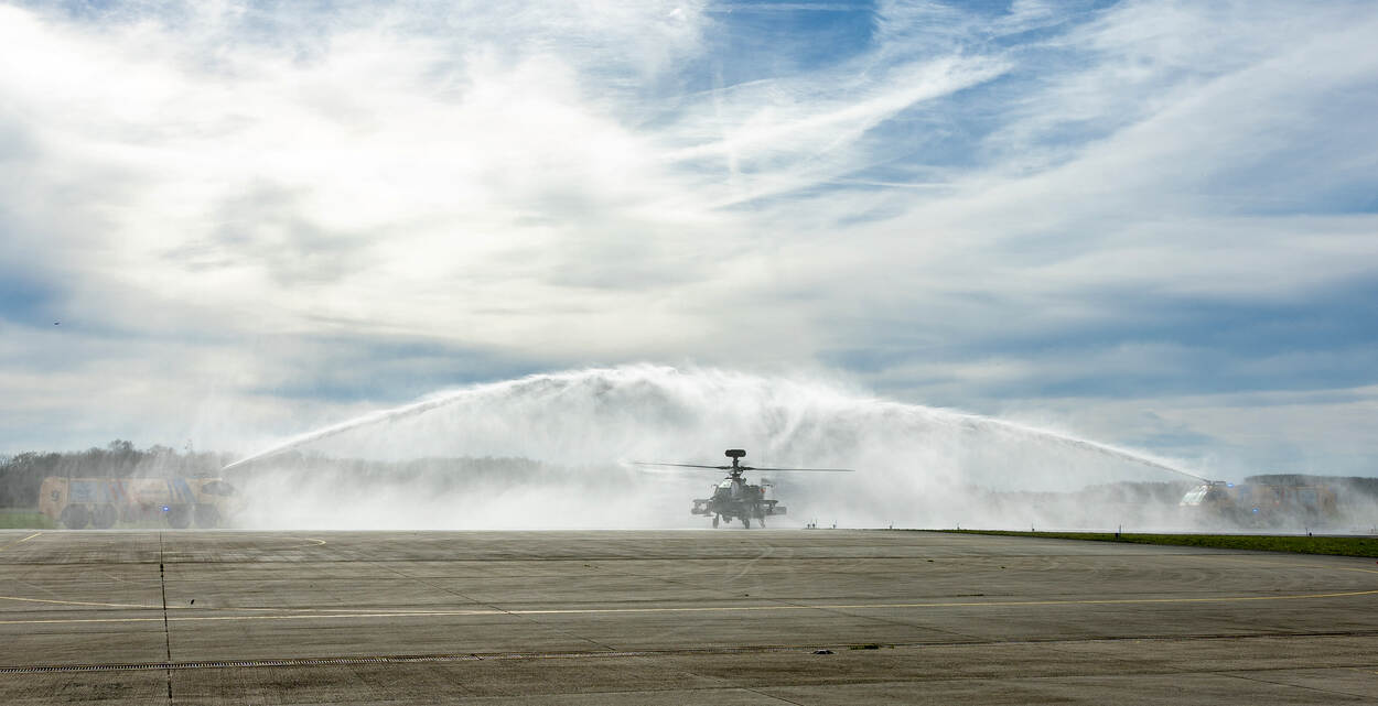 De eerste gemoderniseerde Apache Echo landde op 14 maart op Vliegbasis Gilze-Rijen waar het als welkom een traditionele waterboog kreeg. De ‘Echo’s’ zijn al in gebruik bij het 302 Squadron op Fort Cavazos in Texas. In totaal krijgt dat squadron er acht. De overige twintig Apaches komen op Gilze-Rijen te staan. De toestellen worden met een C-17 Globemaster naar Vliegbasis Woensdrecht gebracht waar ze het acceptatieproces doorlopen. Halverwege 2025 moeten alle gemoderniseerde helikopters zijn geleverd. De helft van de Apache-vloot krijg een Fire Control Radar boven op de rotorhead, zoals op de foto. In volgende nummers van de Vliegende Hollander meer over de AH-64E. Foto’s: sergeant Gregory Fréni