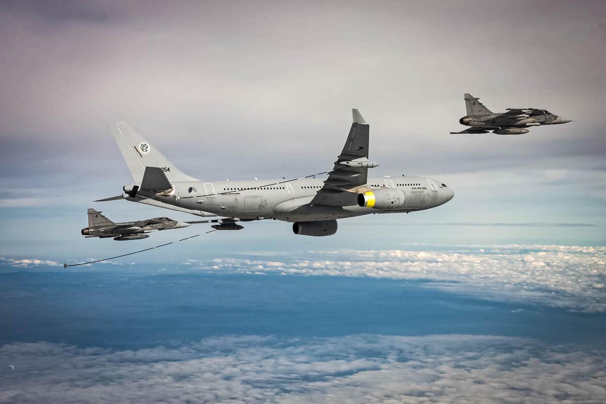 Voor het eerst zijn Tsjechische JAS 39 Gripens in de lucht bijgetankt door een Airbus A330 MRTT van de Multinational Multirole Tanker-Transport Unit (MMU).