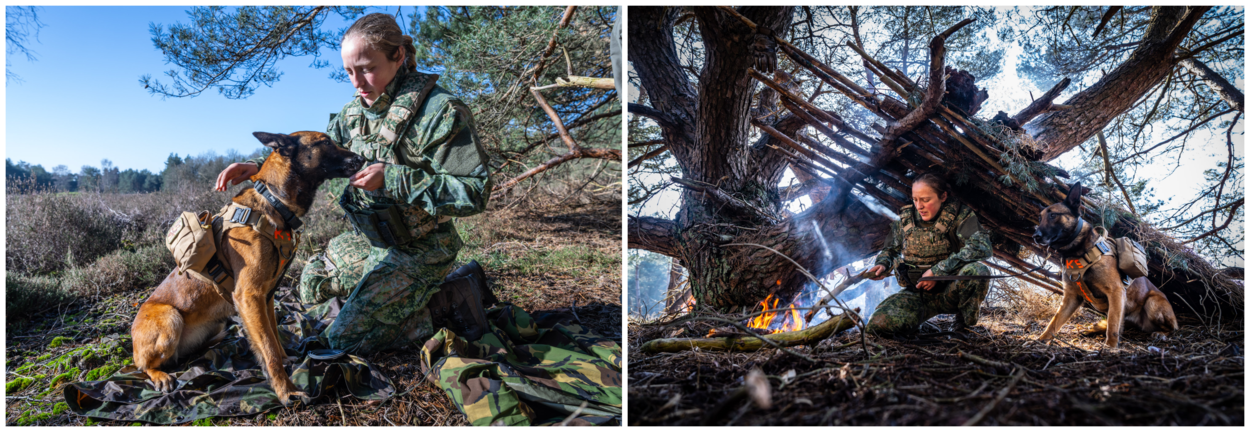 Op Kamp De Kiek leren de cursisten in de wildernis voor zichzelf zorgen. Ze moeten een vuur en een onderkomen maken met ter plekke gevonden materialen, de kledingdrills toepassen en voedsel uit de natuur vangen en opeten. Scholte: “Wat ze hiervoor meekrijgen, is naast de kleding die ze dragen, een poncho, een stuk touw, een zaag en een mes. Je kunt daarmee de poncho spannen, een draagzak maken om stukken hout te verplaatsen of een val maken.” Van dat laatste moet je volgens de specialist in Nederland niet te veel verwachten: “Met dertig strikken vang je hoogstens een konijn. Daarom hebben we iedereen vooraf een forel laten vangen, die ze vervolgens moesten doden en schoonmaken. Dat eerste deden sommigen met enige terughoudendheid.”