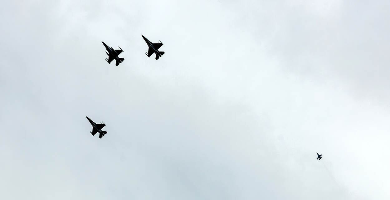 Na de toespraak van de minister vlogen vier F-16’s over in de missing man-formatie over het monument. Veertig jaar lang was dit gewoon; met het uitdienst gaan van de F-16 was het bijzonder, want dit was waarschijnlijk de laatste keer.