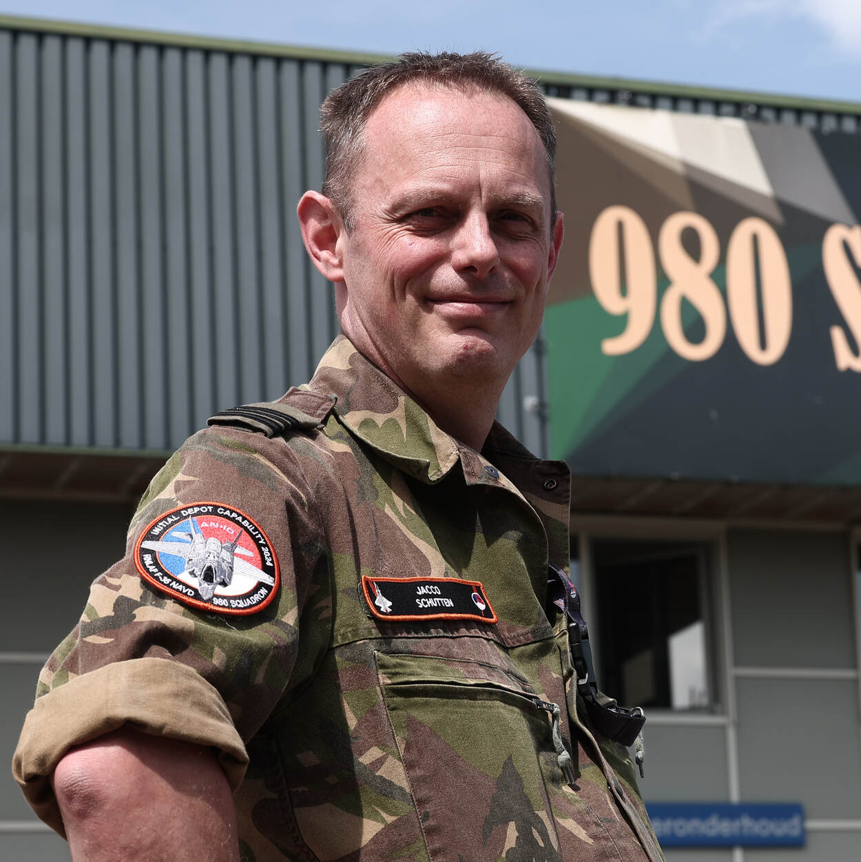 Gaat alles dan helemaal volgens planning? “Nou bijna,” geeft Schutten aan, “maar met zo’n project loop je altijd tegen wat dingen aan. Kleine zaken hoor, zoals gereedschap dat er nog niet is, waardoor je bepaalde zaken niet kunt uitvoeren. Dat hoort allemaal bij een eerste toestel dat binnenkomt. Niets ernstigs. Je moet dit project ook echt zien als kruipen-lopen-rennen, net zoals de introductie van het wapensysteem bij de operationele squadrons.” Daarbij is ook het personeel een zeer kritisch onderdeel. Schutten: “Op het gebied van structures hebben we echt meer handjes nodig. Als iemand zich geroepen voelt, is hij of zij van harte welkom!”