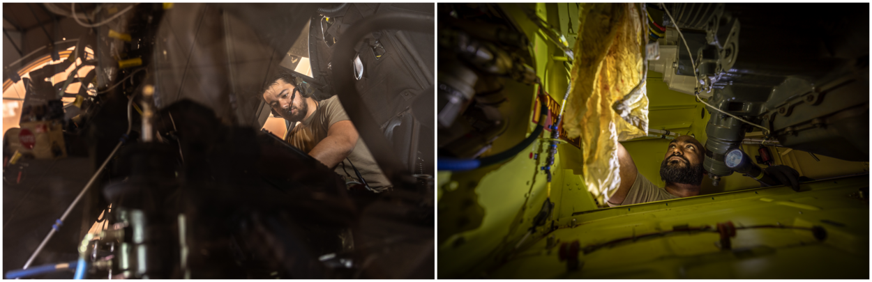 Voorafgaand aan de uitzending maakte zijn club een vooruitgeschoven voorraad en een handvoorraad, die ze meenemen naar AAAB. “Maar je kan niet elk onderdeel meenemen. Benodigde middelen zijn lastig het gebied in te krijgen. Instandhoudingsvluchten met reservedelen zijn er ongeveer een keer per maand.” Eén voordeel: de Nederlanders werken samen met coalitiepartners die met dezelfde aanvoerproblemen kampen én met dezelfde kist vliegen. Hier en daar wordt er wat uitgewisseld als het nodig is.
