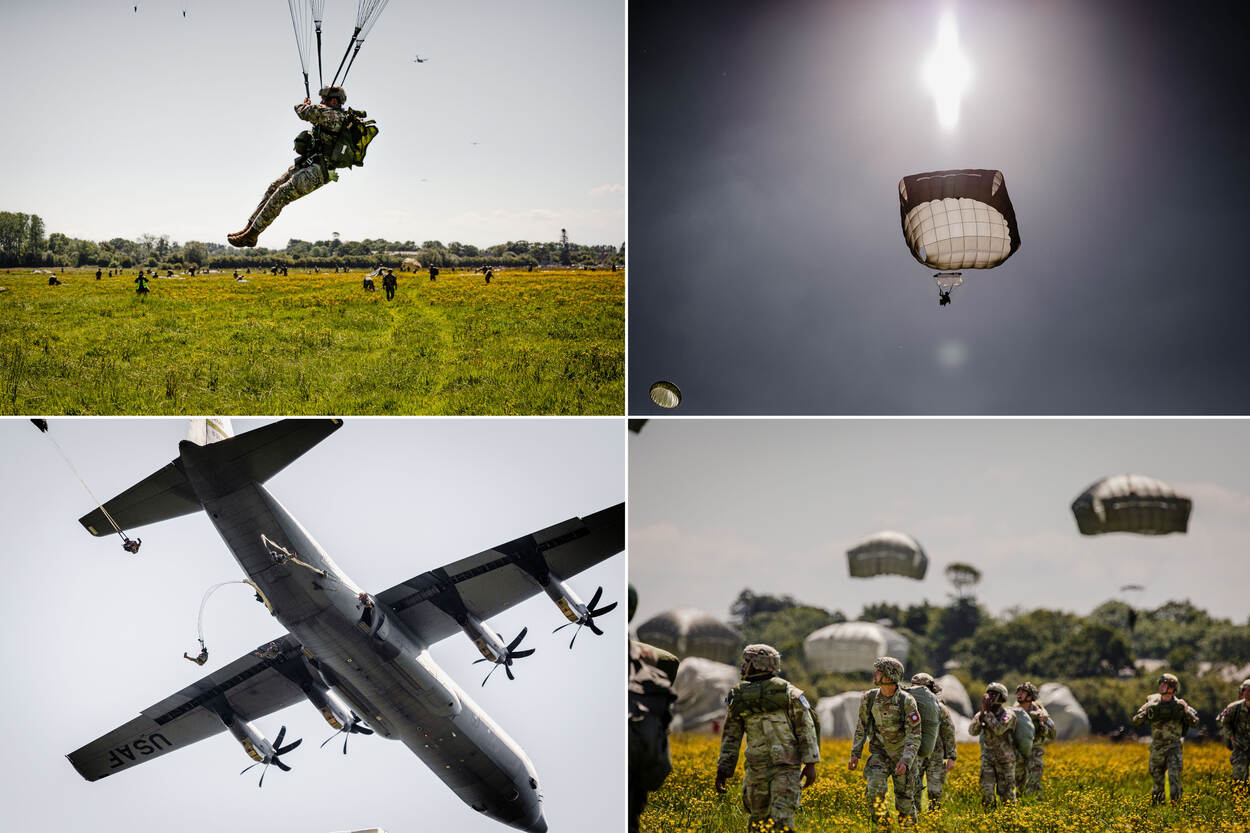 Een Amerikaanse C-130 van Ramstein is voor de gelegenheid voorzien van invasiestrepen. Die tonen tijdens D-Day aan dat het toestel bij de geallieerden hoort. Aan de herdenking namen ruim 1.300 parachutisten deel.