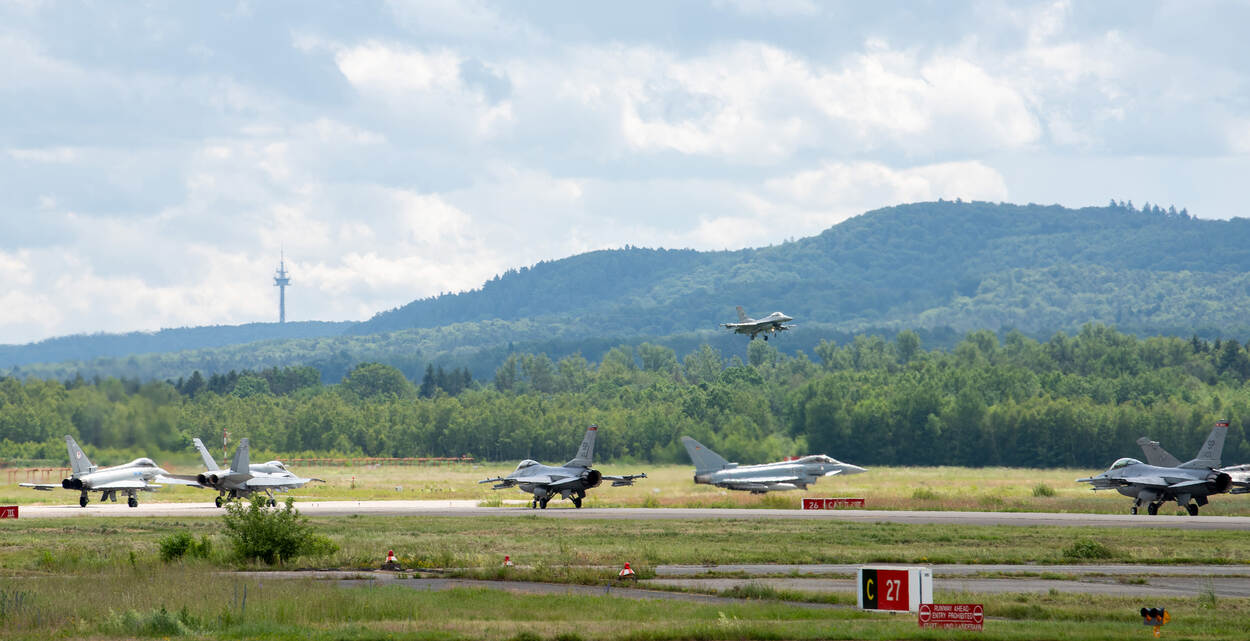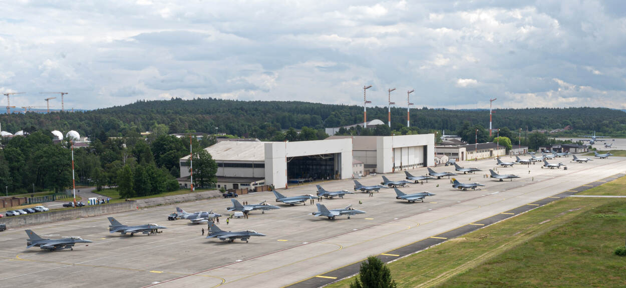 Het platform dat normaliter ruimte biedt aan de C-130’s van het lokale 37th Airlift Squadron, staat nu vol met jachtvliegtuigen uit België, Denemarken, Duitsland, Finland, Frankrijk, Groot-Brittannië, Nederland, Noorwegen en de Verenigde Staten. De Canadese firma Top Aces die in Duitsland met jachtvliegtuigen als oefenvijand optreedt, was te gast en doet mogelijk een volgende editie mee. “Want we willen hier zeker een terugkerend evenement van maken”, geeft Loringer aan. “Misschien volgend jaar, anders het jaar erop.”