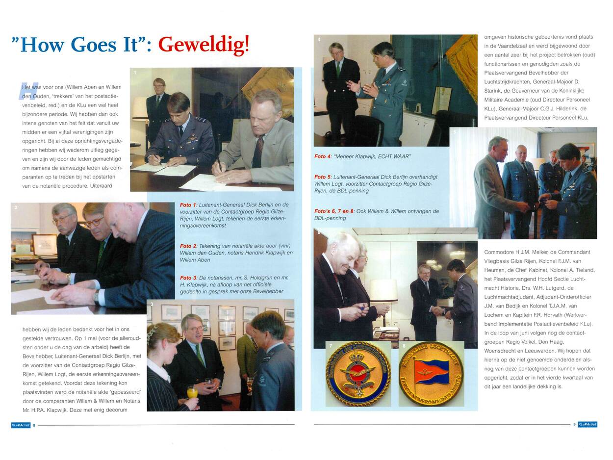 In 2001 krijgen majoors b.d. Willem Aben (79) en Willem den Ouden (overleden in 2008) van de toenmalige Bevelhebber der Luchtstrijdkrachten luitenant-generaal Dick Berlijn de vrije hand om het postactievenbeleid van de luchtmacht vorm te geven. Daarbij krijgen ze steun van de Directeur Personeel generaal-majoor Carel Hilderink en Chef-Kabinet kolonel Ton Tieland. “Met hulp van het ABP werden 10.000 brieven verstuurd met een contactformulier die bij mij het hoofdkwartier binnenkwamen. Daarmee starten wij onze database”, vertelt Aben. Het resulteert uiteindelijk in elf Conctactgroepen Postactieven (CGPA’s); later volgt nog één in Duitsland (Ramstein). “Wij wilden voor de postactieven wat anders dan alleen een toegangsregeling voor een onderdeel waar ze hadden gewerkt. Wij wilden vooral gezien en gehoord worden, net als de veteranen. We zijn allemaal luchtmachters; all in one family. Maar we wilden ook iets wederkerigs: wij vragen de luchtmacht wat voor de postactieven, zij kunnen ook weer ingezet worden hand- en spandiensten. Dat werd keurig vastgelegd in het handboek personeel en natuurlijk in de notariële akte van oprichting en de erkenningsoverenkomsten tussen de KLu en de besturen. Maar zonder de steun van Tieland was het niet gelukt. Die heeft altijd affiniteit gehad met zowel veteranen als postactieven inclusief de burgers, ook nu als voorzitter van de Milu. Wij legden de fundering en inmiddels staat er met twaalf CGPA’s een huis met ook nog meubilair. Het was een eervol, mooi en bovenal zinvol project. De – postactieve – mens werd er weer bij betrokken.”