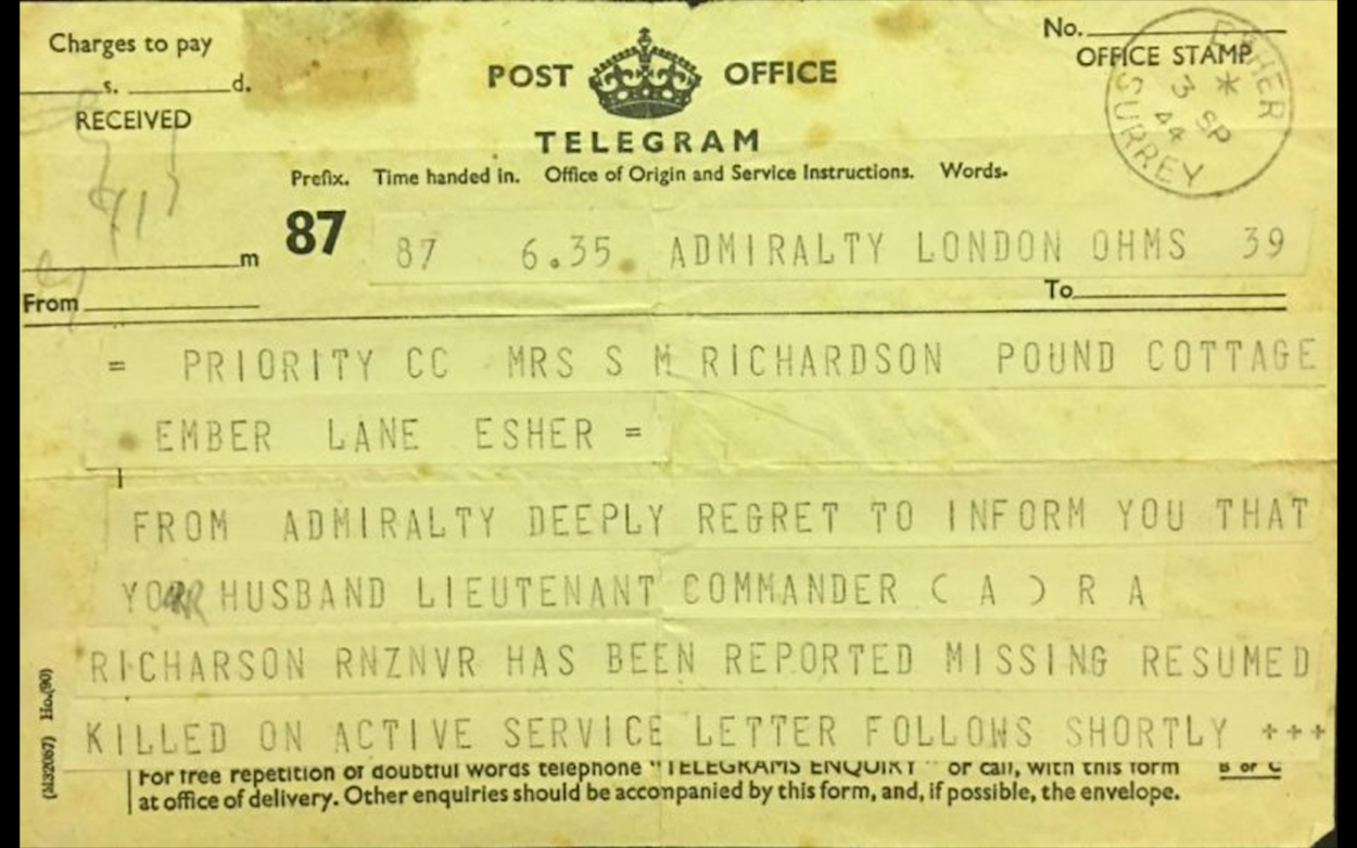 “Mijn oma heeft heel veel verteld over mijn opa”, meldt kapitein-luitenant ter zee (commander) Philip Richardson per videoverbinding vanaf het kanaaleiland Jersey. Het verhaal van opa Ron inspireert Philip om dienst te nemen bij de marine. “Dat legde wel druk op me, eerlijk gezegd. Maar ik heb een geweldige tijd gehad als helikoptervlieger op de Westland Lynx en ben uiteindelijk ook squadron leader geworden.”