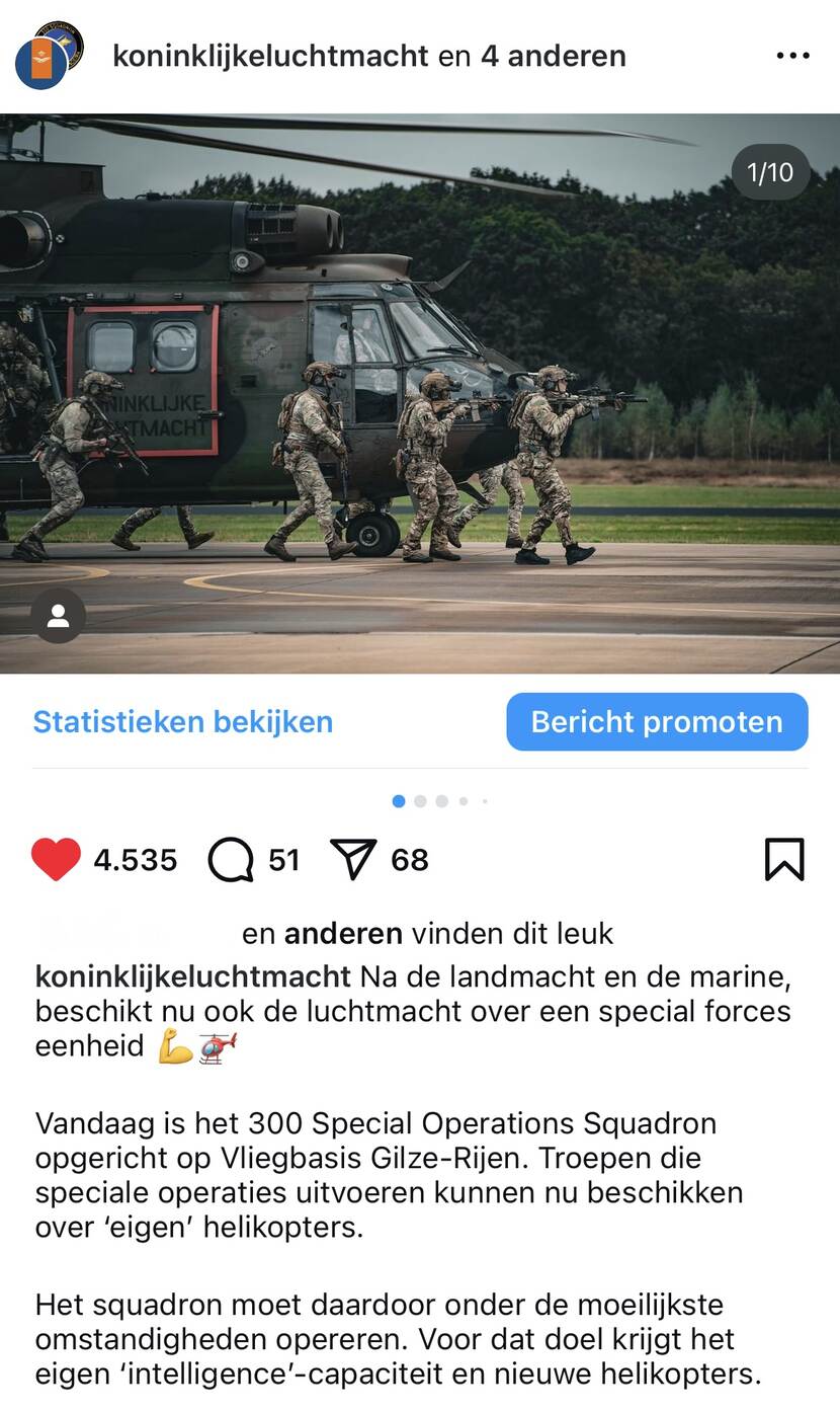 Na de landmacht en de marine, beschikt nu ook de luchtmacht over een special forces eenheid. Op 1 oktober werd het 300 Special Operations Squadron opgericht op Vliegbasis Gilze-Rijen. Meer zien en lezen? Klik dan op deze link: