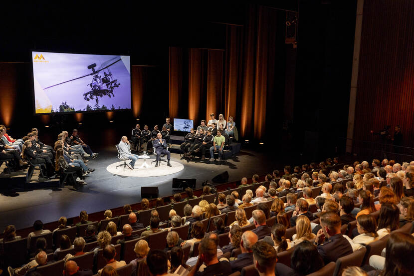 Dat voor vrede en veiligheid een sterk defensie-apparaat nodig is, is duidelijk. Maar wat vraagt dat van de rest van de samenleving? We horen steeds vaker dat Defensie meer ruimte nodig heeft. Dat heeft impact op de leefomgeving van veel mensen. Maar ook op bijvoorbeeld bedrijven in de omgeving van een vliegbasis. De reacties over meer ruimte voor Defensie zijn wisselend, ook in de zaal. Een bezorgde inwoner van een gemeente rondom Vliegbasis Eindhoven spreekt zijn zorgen uit over de continue bewegingen boven zijn woning. Terwijl een boer die zijn bedrijf heeft in het oefengebied van Defensie vertelt hoe hij juist zijn akkers beschikbaar stelt voor oefeningen van Defensie. Steur is daarover duidelijk: ‘’Wederzijds begrip is belangrijk in de discussie om ruimte. Ik hoop dat mensen beseffen dat de jongens en meiden die boven hun huizen of bedrijven vliegen dat doen voor de veiligheid van onze samenleving.” Maar als buur van een van de vliegbases van de luchtmacht is hij zich bewust dat niet iedereen zit te wachten op de ongemakken waarmee omwonenden te maken hebben. Foto: sergeant-majoor Maartje Roos
