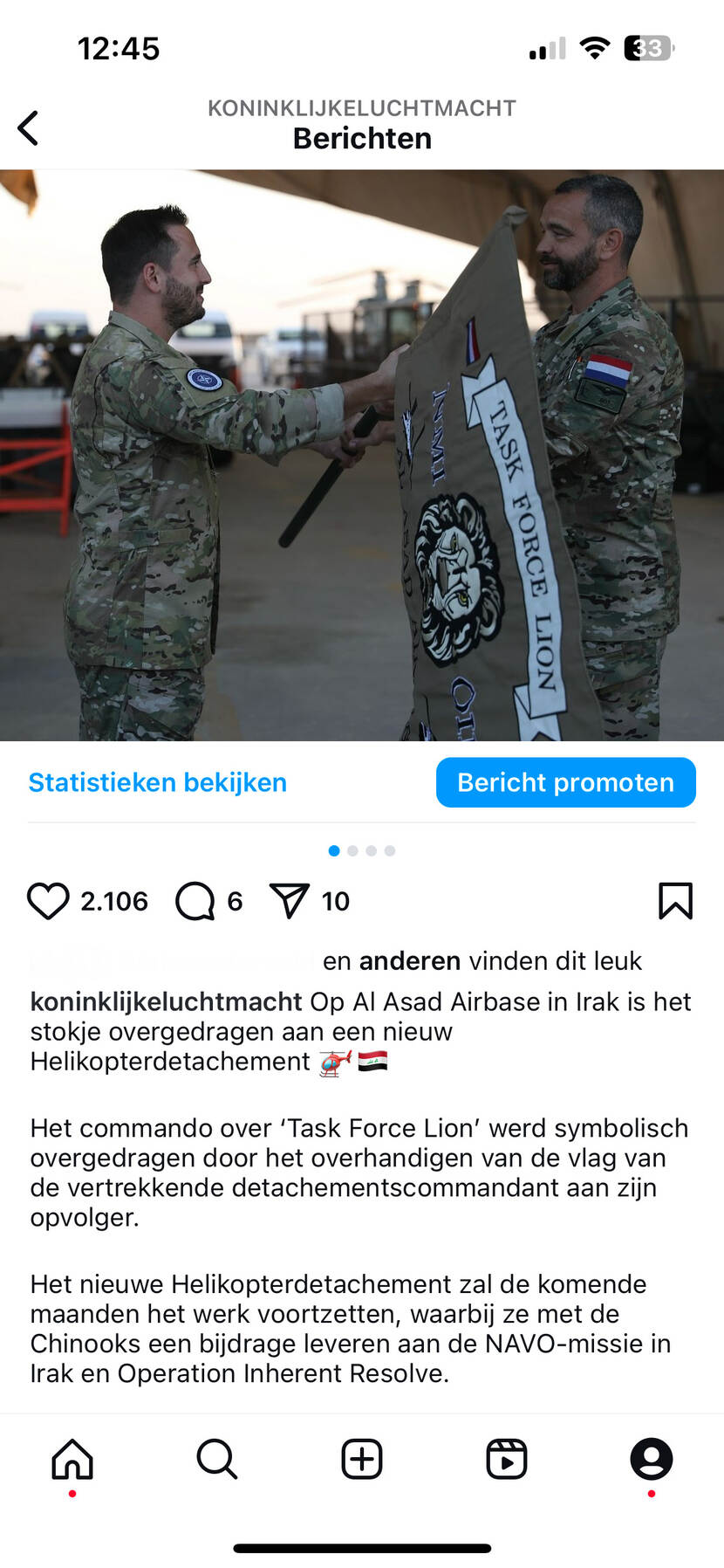 Op Al Asad Airbase in Irak werd het commando over ‘Task Force Lion’ symbolisch overgedragen door het overhandigen van de vlag van de vertrekkende detachementscommandant aan zijn opvolger. Het nieuwe helikopterdetachement zal de komende maanden het werk voortzetten. Meer zien en lezen? Klik dan op deze link.