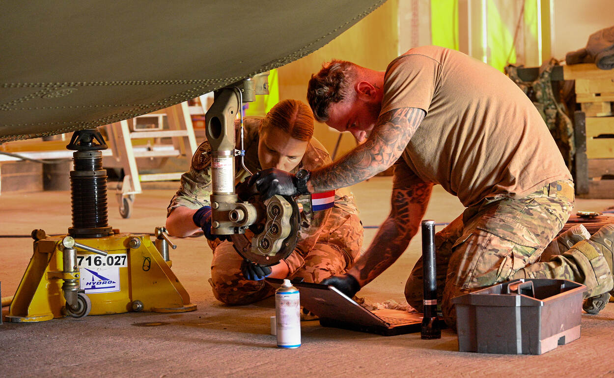 Hoewel deze optie vooraf al wordt bestempeld als ‘minst favoriete keuze’, staan de militairen afgelopen december toch in de tenthangaar op AAAB om het toestel te inspecteren. Dat maakt dat de technische dienst er een flinke kluif bij krijgt. Terwijl de ene helft van de techneuten zich blijft bezighouden met het gereedstellen en onderhouden van de twee nog operationele toestellen, sleutelt de andere groep van tien personen dagelijks tien uur aan het toestel dat de 320-uursinspectie ondergaat.