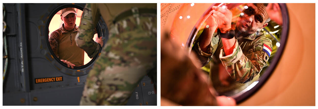 Deze manier van werken brengt ook andere uitdagingen met zich mee. “Zo is er altijd de kans dat het luchtalarm afgaat vanwege een mogelijke aanval of een oefening”, zegt de adjudant. “Tijdens de inspectie was er een oefening waarbij we ongeveer een uur in de bunker zaten. Toen we vervolgens terugkwamen, moesten we eerst een half uur naar een stuk gereedschap zoeken dat in alle haast was weggelegd. Dan kan je pas weer verder gaan als dat gevonden is.”