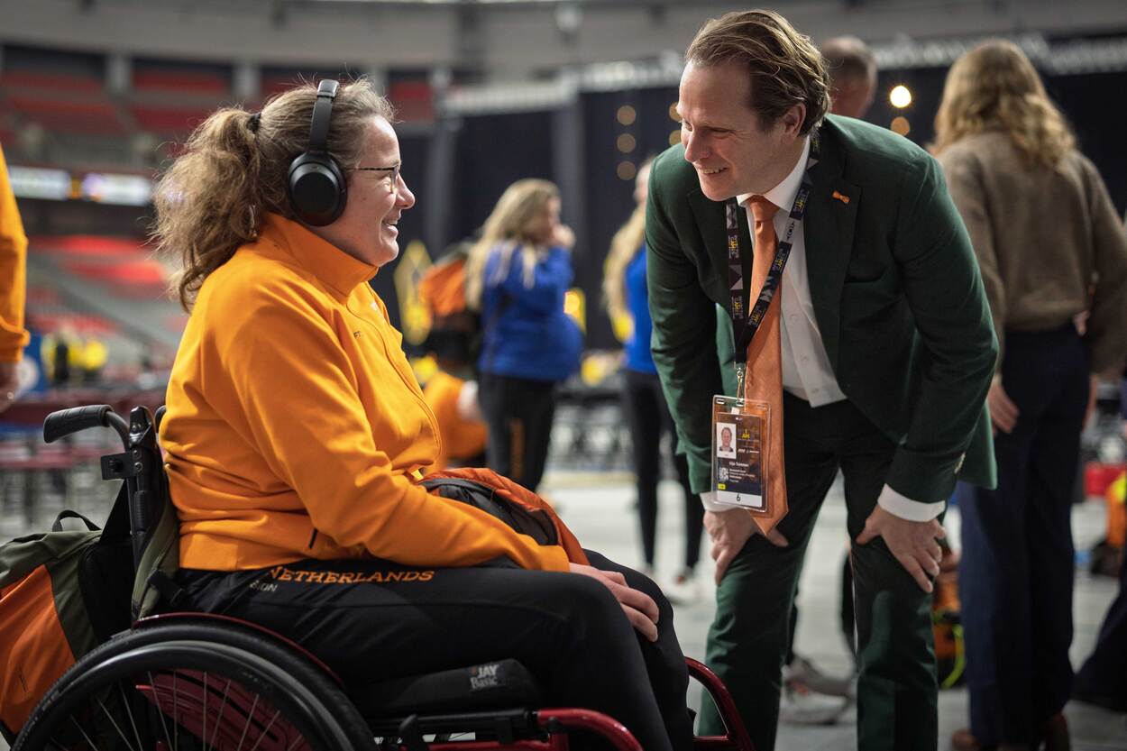 Plezier heeft ze overduidelijk ook in het rolstoelbasketbal. Tijdens de wedstrijd valt haar fanatisme op. “Natuurlijk is meedoen belangrijker dan winnen, maar je speelt wel een spel om te winnen. Ook als je weet dat je amper kans maakt, je doet toch je uiterste best om iets neer te zetten.” En die vrolijke foto met staatssecretaris Tuinman betekent dat ze er weer lol in heeft. “Ja”, zegt ze met een glimlach, “maar hij heeft ook toegezegd dat hij na de Invictus Games een keer met zitskiën komt meetrainen. Daar hou ik ‘m aan, dus zet dat maar in het artikel erbij.”