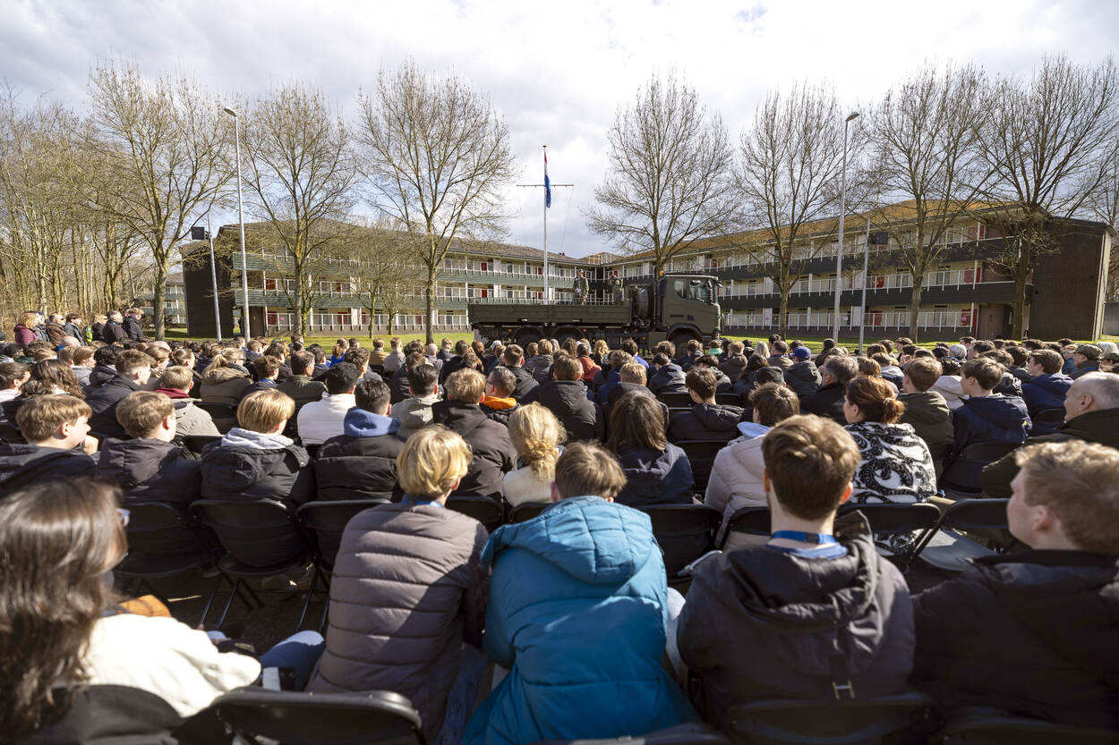 “Wie wil hier vlieger worden?” Een paar honderd vingers schieten de lucht in. “En wie komt er om misschien wel meteoroloog te worden?”, vraagt kolonel Franka Teunissen-van de Kamp in haar openingsspeech. De jeugd denkt bij een carrière bij de luchtmacht al snel aan vliegen in een straaljager. Maar volgens de Commandant Koninklijke Militaire School Luchtmacht (KMSL) Vliegbasis Woensdrecht gaat veiligheid tegenwoordig om veel meer dan vechten. Daarom wil de kolonel ook graag vliegtuigonderhoudsmonteurs, ICT-specialisten, logistieke experts en medisch personeel binnenhalen. “Er is geen vak dat jij kan bedenken dat we hier niet hebben,” benadrukt ze. “Op Vliegbasis Woensdrecht leiden we mensen op van spijkerbroek tot militair en ook voor vaktechnische specialismen.”