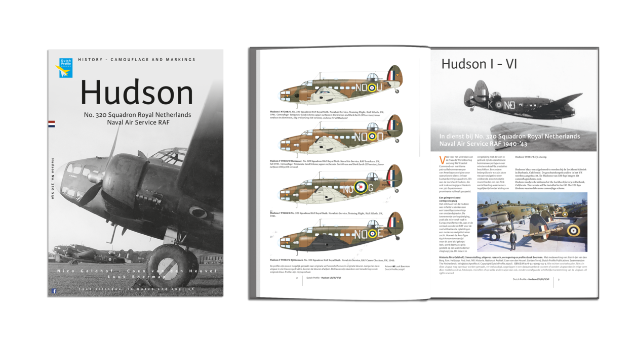 ‘Hudson – No. 320 Squadron Royal Netherlands Naval Air Service RAF’ met ISBN 9789490092559 is geschreven door Nico Geldhof en Coen van den Heuvel, is samengesteld door Luuk Boerman en uitgegeven door Dutch Profile Books. De softback op formaat 21 x 29,5 cm telt 48 pagina’s met Nederlandse en Engelse tekst en is geïllustreerd met 2 kleuren- en 71 zwart-witfoto’s en vier pagina’s kleurenprofielen. Het boek kost €17,95 en is onder andere te bestellen via www.dutchprofile.nl.