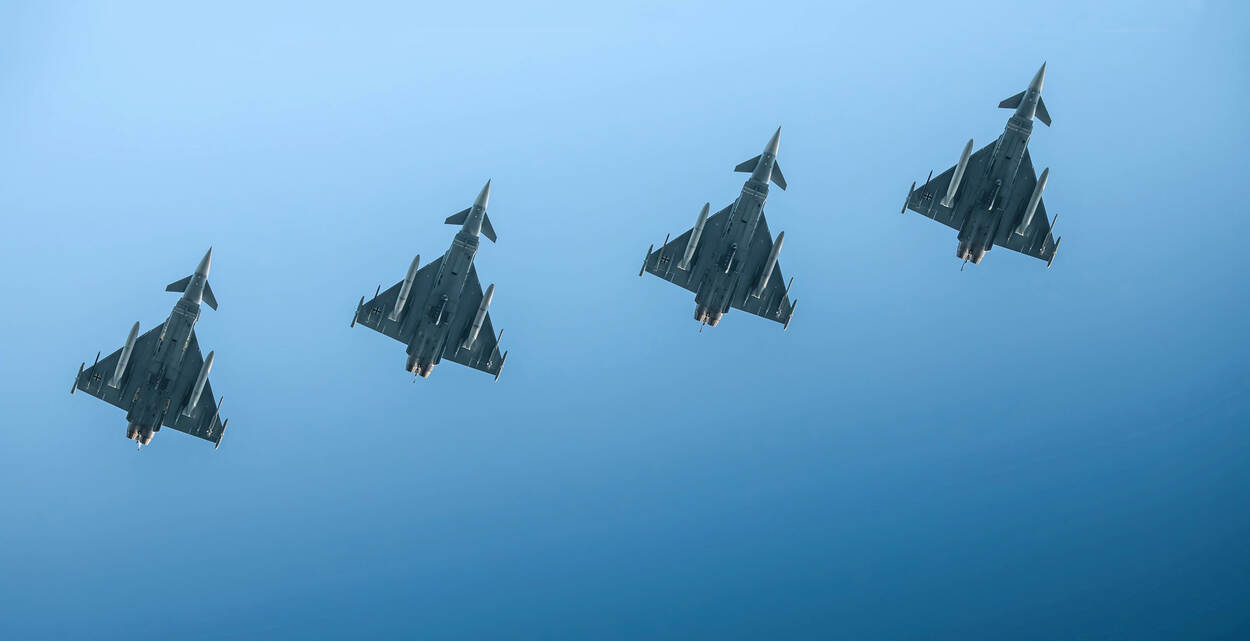 Air-to-air refuelling is voor een tankvliegtuig zoals de A330 MRTT van de MMU de belangrijkste taak. Voor jachtvliegers van bijvoorbeeld deze Britse Typhoons, is het echter een onderbreking van hun warfighting-missie. Foto: Arno Marchand