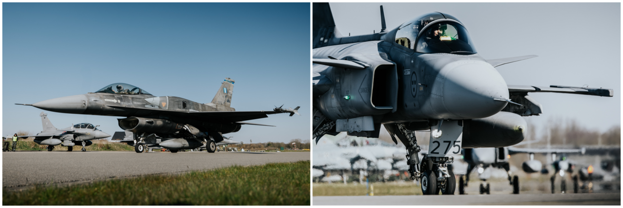 Op de Deense vliegbasis Skrydstrup in begint gelijktijdig de missie voor een Deense F-35 en een Hongaarse JAS 39 Gripen.
