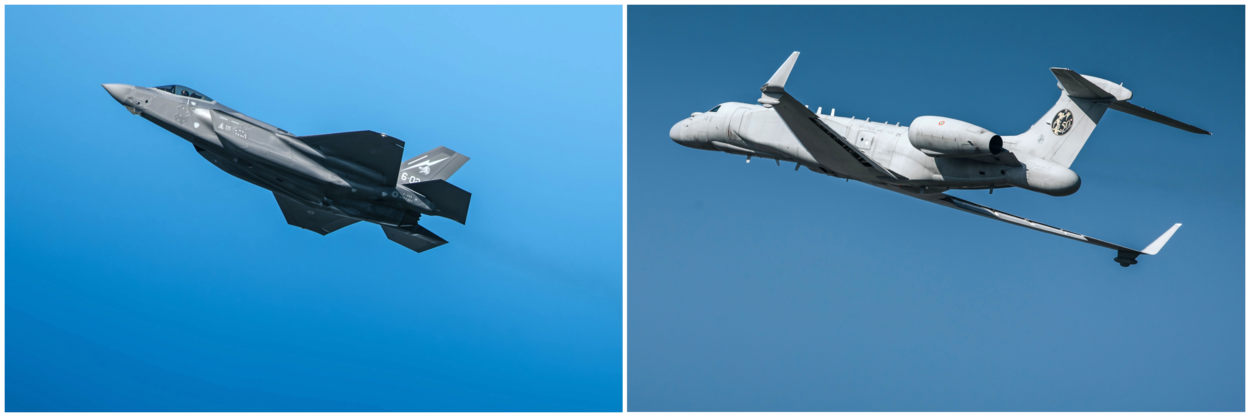 Ook in Denemarken staan deze Italiaanse F-35 en zwaar gemodificeerde G-550 CAEW die wordt gebruikt voor airborne early warning- en command and control-taken.