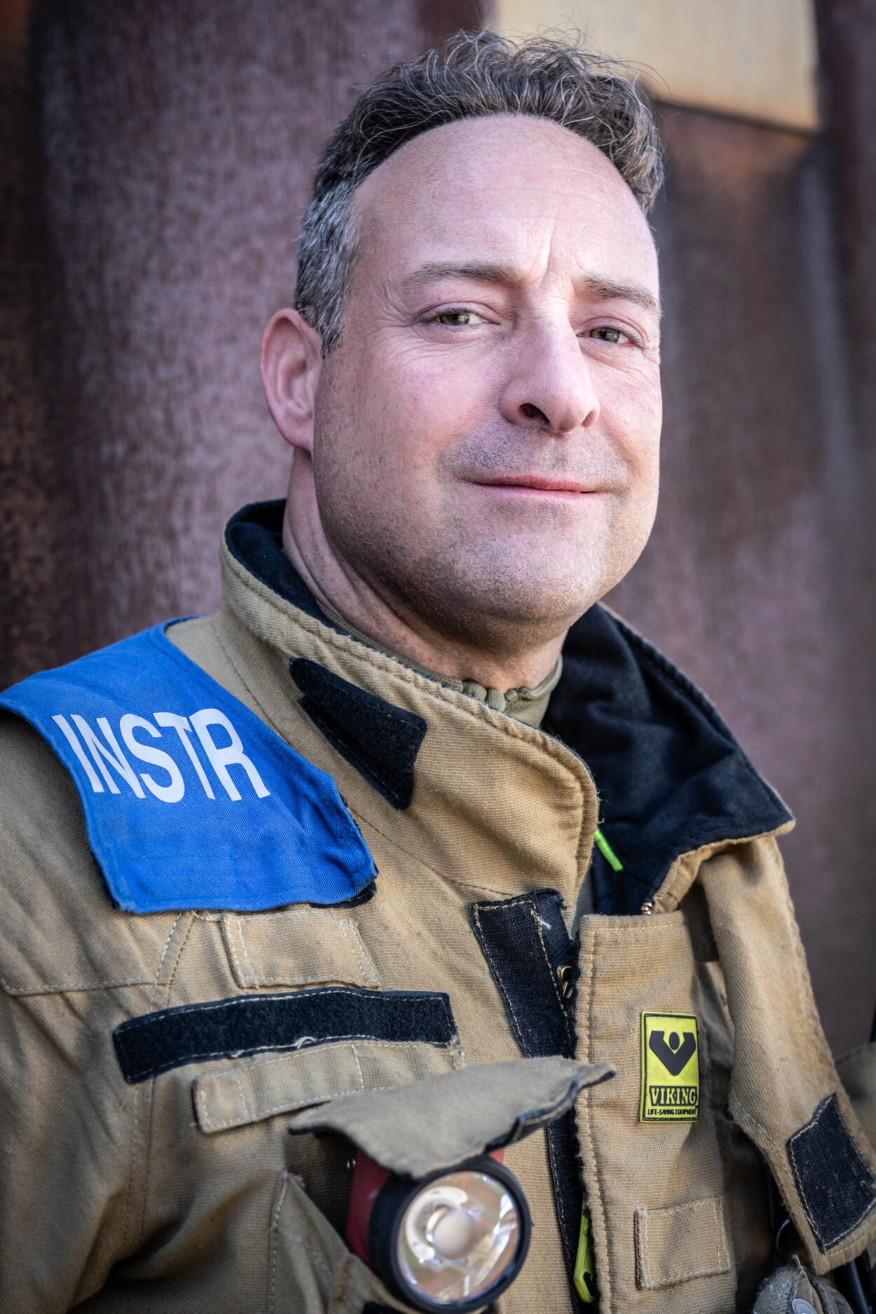 “Hoewel ik het operationele werk mis, is de rol van instructeur me honderd procent meegevallen. In deze functie ben je de spil van alles. Ik was bang voor een stijve acht tot vijf-baan, het voor de klas staan en een verhaal over iemand heen blèren. Maar het is juist heel interactief met veel praktijklessen en veel variatie. Zo leiden we beginnersklassen op, maar ook specialisten zoals pompbedieners, vliegtuigbrandbestrijders en bevelvoerders. Alle militaire en burgerbrandweermensen van de krijgsmacht volgen hier hun opleiding. Jaarlijks doet iedereen hier ook zijn JOP (jaarlijks oefen programma, red.). De collega’s in het land zien we dus met enige regelmaat, dat is heel leuk. Daardoor kom ik nu ook weer oud-collega’s tegen. Het psychologische aspect van mijn functie vind ik ook heel interessant. Ik coach collega’s hoe te handelen bij incidenten, geef ze tips over efficiënter werken, hoe je je hoofd erbij houdt in de chaos en hoe je dan beslissingen kunt maken. Het is mooi al mijn ervaring te kunnen inzetten. In de toekomst wil ik graag nog eens on scene commander worden. Op ‘de uitruk’ zitten, is toch het mooist.”