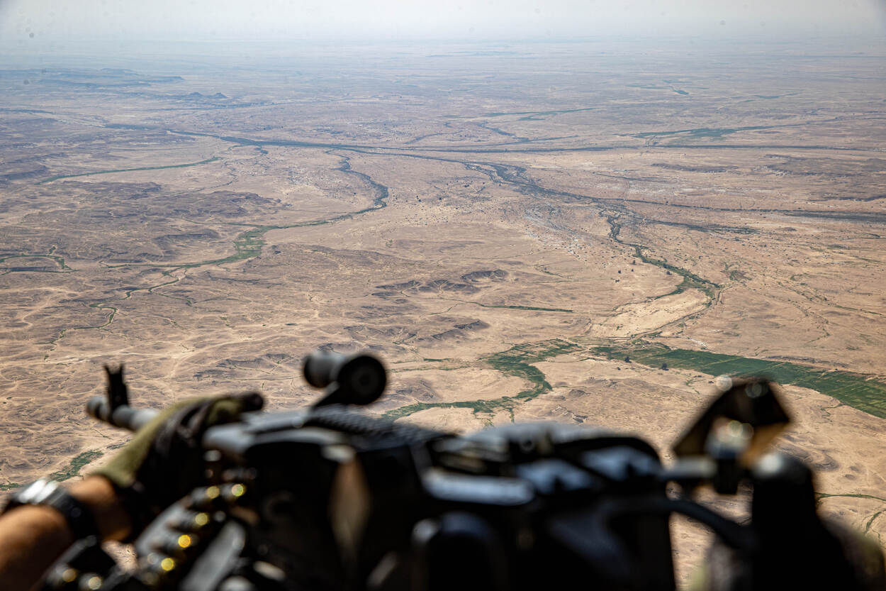 Vliegen in Irak is niet alleen uitdagend door de hitte – in de cockpit is het al gauw tien graden warmer dan buiten – het is ook prachtig. Grotendeels is Irak een eindeloze, sepiakleurige zand- en rotsvlakte. In het olierijke land volgen raffinaderijen elkaar in rap tempo op. Her en der wandelen herders met schapen en kamelen door de woestijn. Sommige stukken van de route komen haast uit een film. Zeker boven de oevers van de azuurblauwe rivier Eufraat kijkt iedereen zijn ogen uit. Achthonderd meter onder de helikopter schuiven felgroene landbouwgronden voorbij, met ontelbaar veel palmbomen.