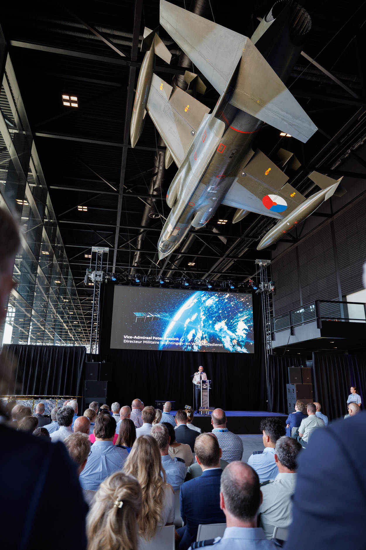 Zo’n tweehonderd genodigden verzamelen zich op deze tropische dag in het Nationaal Militair Museum, gelegen op voormalig Vliegbasis Soesterberg. De plek waar in 1913 de Luchtvaartafdeeling werd opgericht, het begin van de Nederlandse militaire luchtvaart. Ook de plek waar het eerste militaire vliegtuig, de Brik van Van Meel, begon aan de verkenning van het luchtruim. Vandaag, ruim een eeuw later, is het de plek waar het ruimtedomein officieel binnen de krijgsmacht erkend en belegd wordt binnen de Koninklijke Luchtmacht.