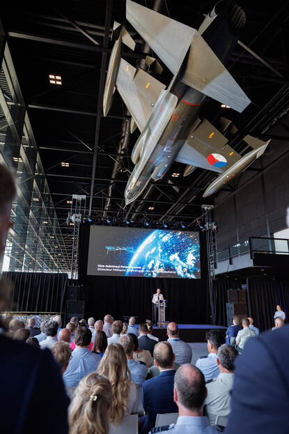 “Wat begon als pionieren in het luchtruim, breidt zich vandaag uit tot ver daarboven”, trapt demissionair minister van Defensie Ruben Brekelmans het evenement af. “De oorlog in Oekraïne, maar ook het conflict in het Midden-Oosten, toont hoe essentieel ruimtecapaciteit is geworden. Satellietbeelden, communicatie, positionering; zonder het space-domein is er geen effectieve defensie. Space is geen luxe. Het is een force enabler. Het is een fundament waarop onze krijgsmacht opereert. Daarom is het goed dat we vandaag formeel vastleggen: space is niet langer een project. Het is een domein.”