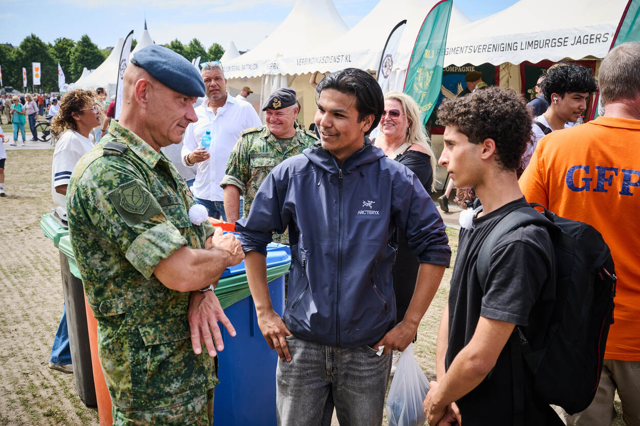 Het Malieveld is elk jaar de plek waar veteranen samenkomen. Bijpraten met collega’s van vroeger, eten en drinken, dansen op muziek van (onder meer) het Orkest Koninklijke Luchtmacht, even kletsen met demissionair minister van Defensie Ruben Brekelmans of zelfs met koning Willem-Alexander of met hem op de foto gaan. Daarnaast is er een spectaculaire parachutesprong, kunnen de bezoekers in de wereld van missies duiken, vliegen in een F-16-simulator of zitten in een militair voertuig of een Alouette III die tot en met 2015 dienst deed bij de luchtmacht.
