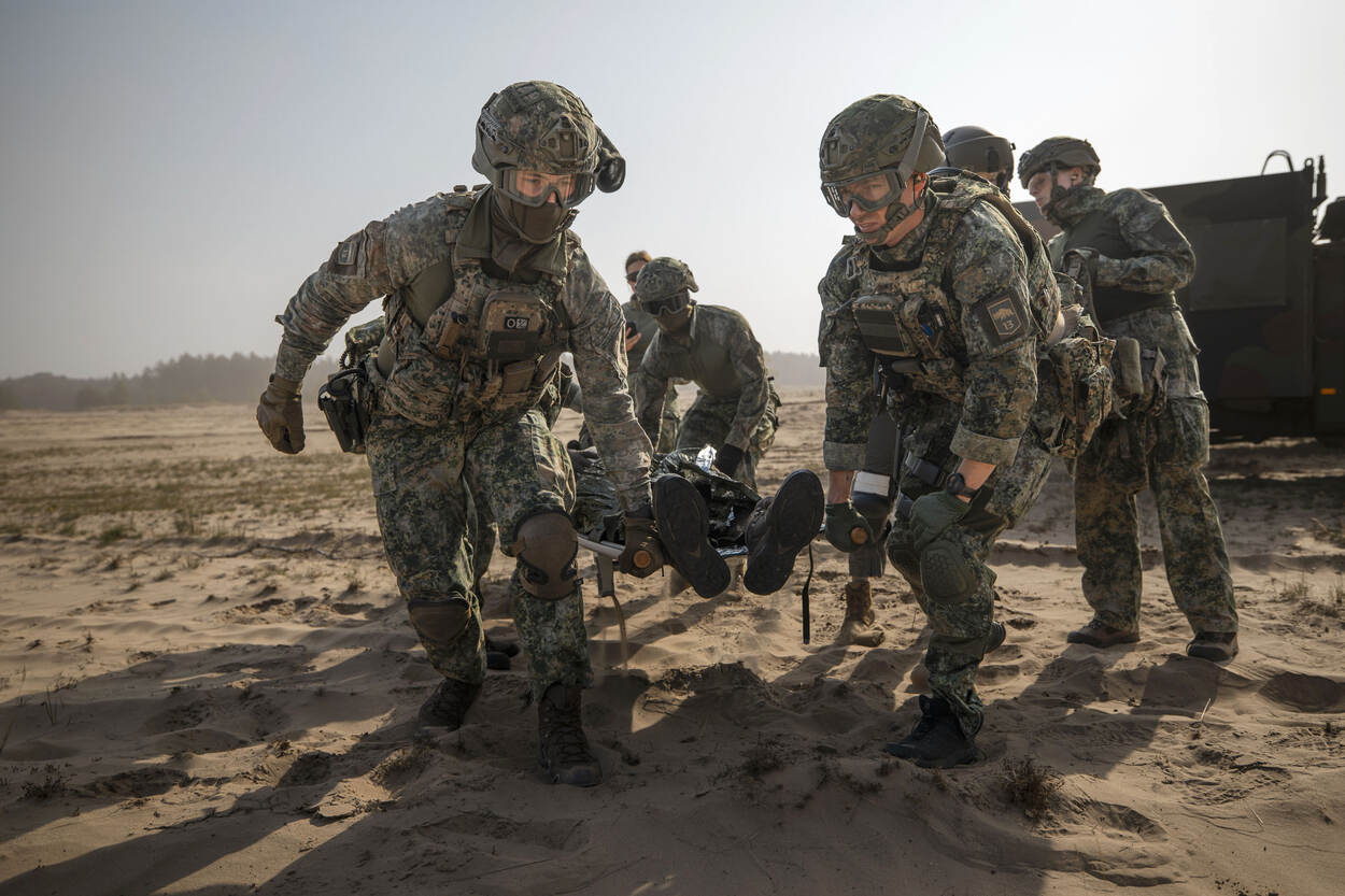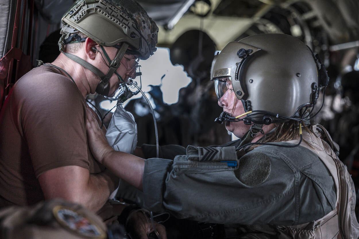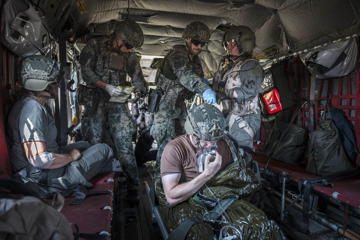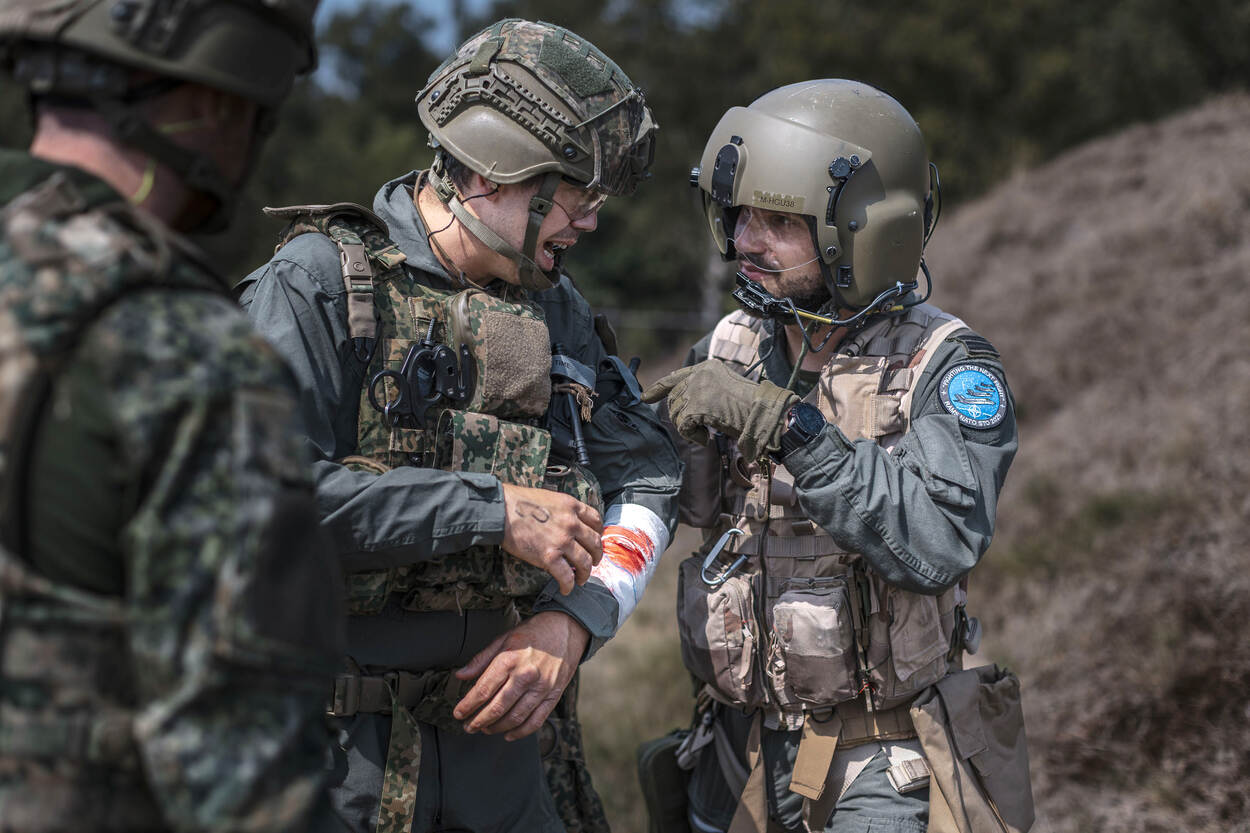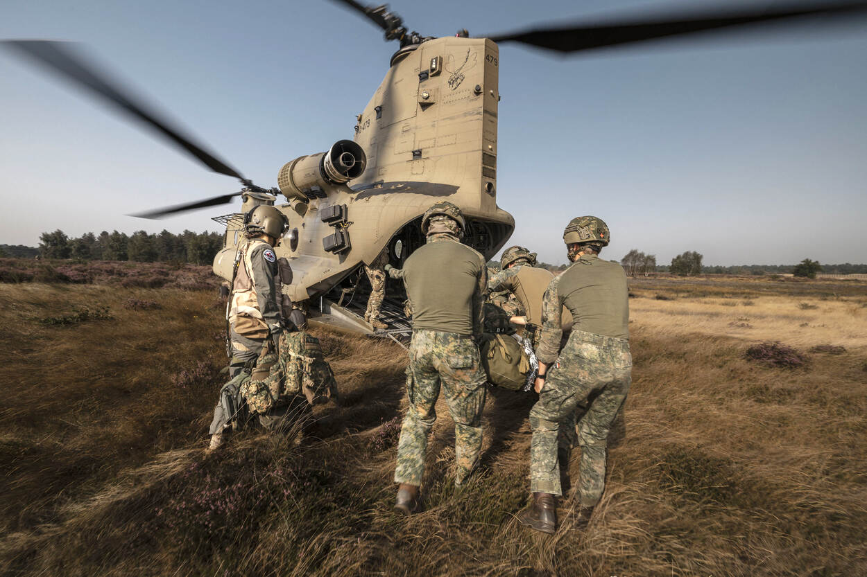 Voorbereiden op Hoofdtaak 1 betekent ook rekening houden met (oorlogs)gewonden. Het helpen, verzorgen en vervoeren van hen, de zogeheten operationeel geneeskundige keten, moet dan ook beoefend worden. Dat gebeurde van 11 tot 15 augustus tijdens de AE-trainingsweek, waarin land- en luchtmachteenheden de handen ineen sloegen. Want je kunt maar beter voorbereid zijn op een oorlogsscenario.