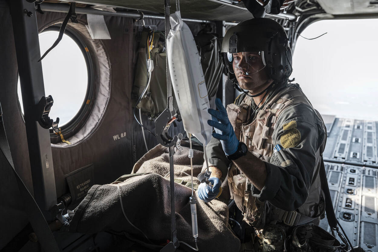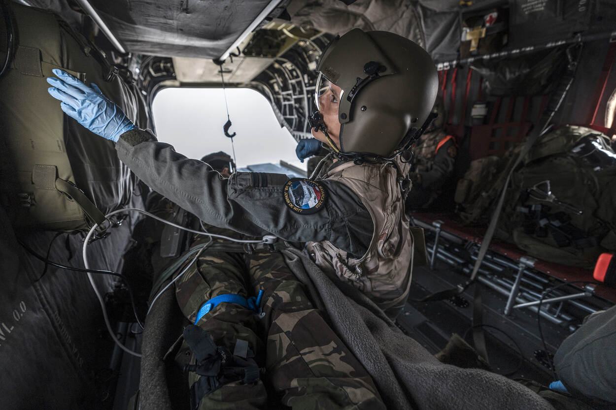 Een volgende schakel in de geneeskundige keten is het transport naar een nog hoger zorgniveau. De gewonden belandden uiteindelijk in het Centraal Militair Hospitaal of specialistische civiele ziekenhuizen. Defensie zet flink in op ‘aeromedical evacuation’. Zo heeft de organisatie medische middelen in bestelling om grote groepen gewonden via de lucht te evacueren.