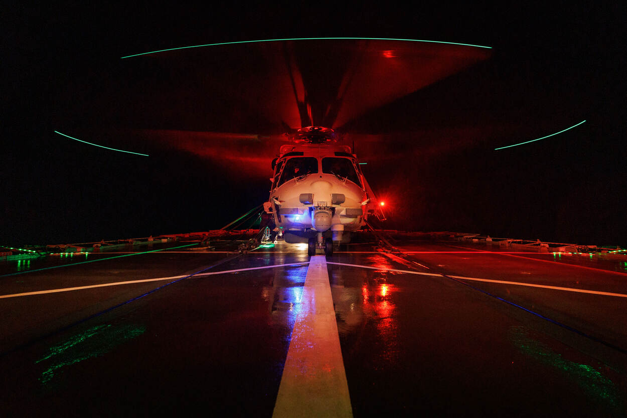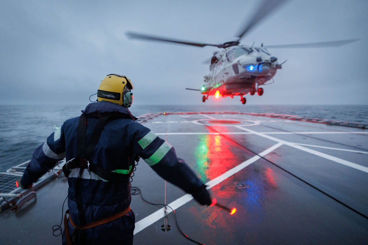 Sinds de Russische inval in Oekraïne behoren ASW-taken tot Hoofdtaak 1. Met oefeningen als Dynamic Monoose en Riptide (Noorwegen), Polaris en Squale (Frankrijk) en nu Playbook Merlin, houden de vlieg- en onderhoudsploegen van de boordhelikopter hun skills op peil. Wouter: “De kracht van de NH90 is dat het een verlengstuk van het schip is. Het kan op afstand zoeken naar onderzeeboten. Zo voorkomt de helikopterbemanning dat een onderzeeboot een dreiging vormt voor een schip of taakgroep. Idealiter zijn onze sensoren complementair aan die van het schip; dan bereiken we het beste operationele effect. Als het moet kunnen we binnen een kwartier wegvliegen, mits we met een ingewerkte bemanning werken en het toestel klaarstaat op het helikopterdek.”