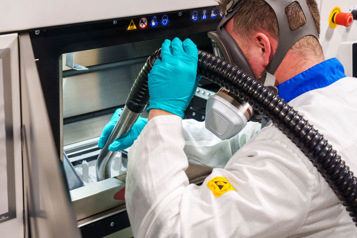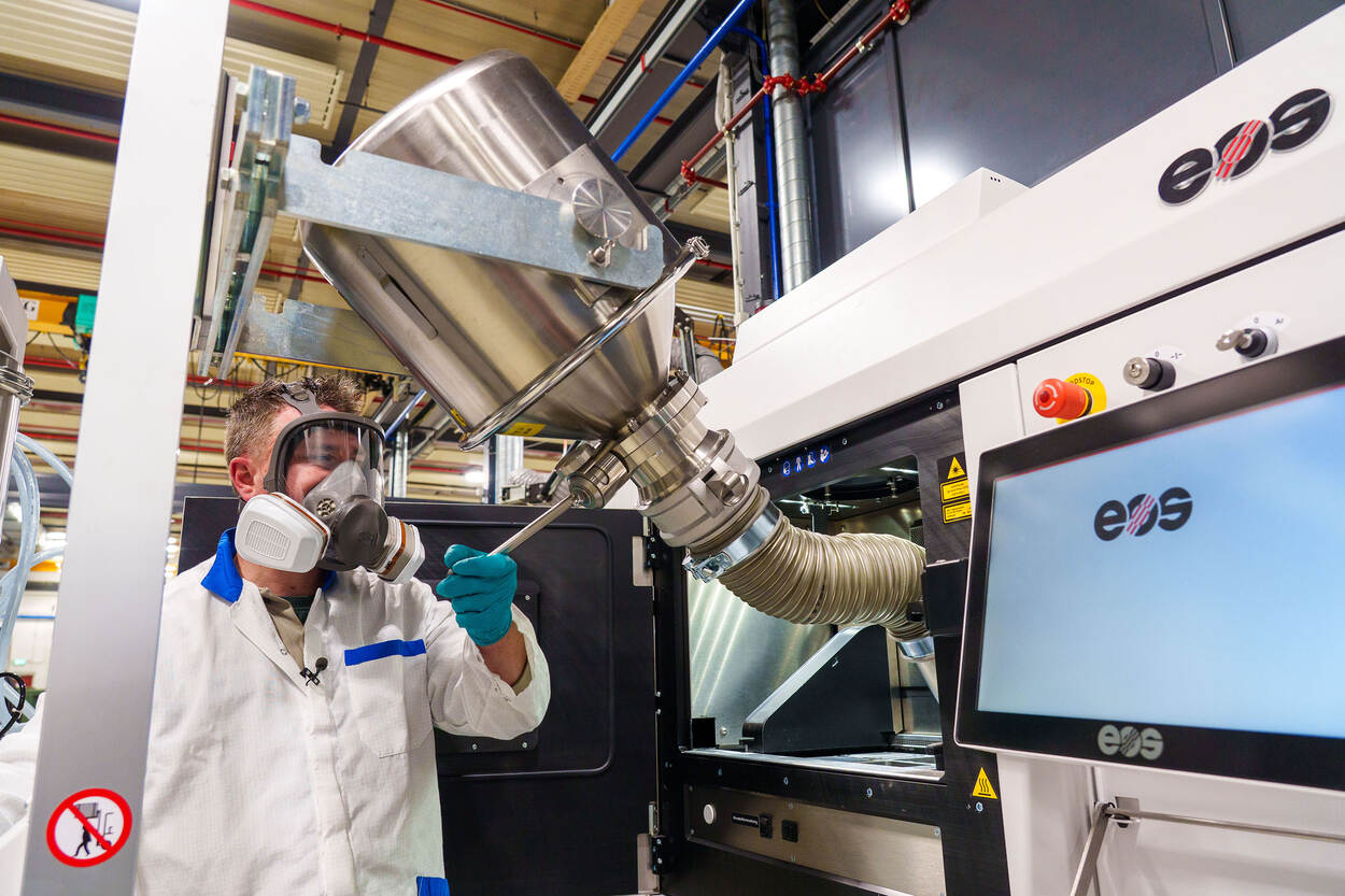 Wie denkt dat een 3D-metaalprinter lijkt op de hobbyprinter uit de elektronicabrochures, heeft het mis. De huidige machine, gebouwd door fabrikant EOS, werkt op basis van powder bed fusion. Het proces begint bij een digitaal ontwerp. “Daarvan maken we een bestand dat de printer begrijpt. Uit een bak met metaalpoeder, aluminium, staal of zelfs exotische legeringen smelt een laser het model laagje voor laagje tot een solide component.” De onderdelen kunnen variëren van millimeters klein tot 40 bij 40 centimeter, de maximale afmetingen van de huidige bouwplaat. “De komende jaren komt er een grotere en geavanceerdere printer bij, waardoor we meerdere tegelijk en ook grotere componenten kunnen produceren.